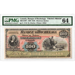 $100 1889 Banque d'Hochelaga Canada Front Proof Note - PMG UNC-64