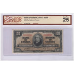 SOLD $100 1937 Bank of Canada Note Osborne Signature BC-27a - BCS VF-25