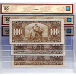 SOLD $100 1937 Bank of Canada Notes BC-27b - 3 Consecutive BCS AU-50/5