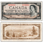 Available for sale is a $100 1954 Bank of Canada Note Devil Face A/J Prefix BC-35a - Minor Writing