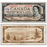 $100 1954 Bank of Canada Note Devil Face A/J Prefix BC-35a - Writing/Tear