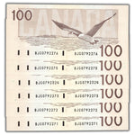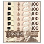 $100 1988 Bank of Canada Notes BJG Prefix BC-60a-i - 6 Consecutive Ch UNC