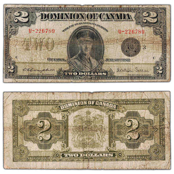 $2 1923 Dominion of Canada Note Black Seal Series U DC-26j - Circulated