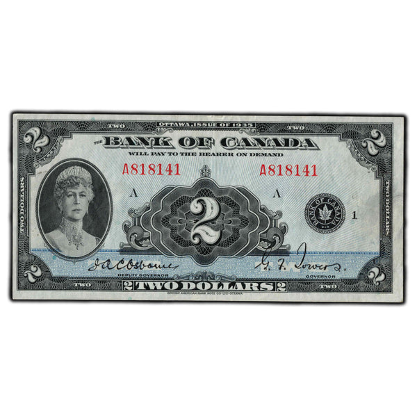 SOLD $2 1935 Bank Of Canada Note English Text BC-3 - AU-50