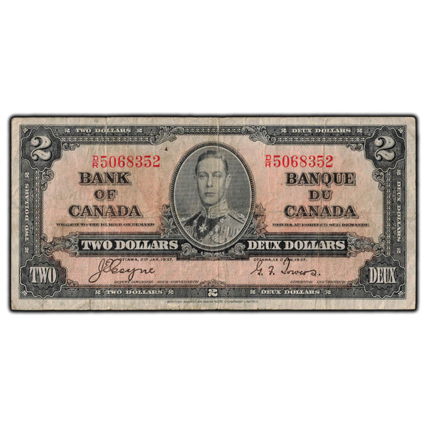 SOLD $2 1937 Bank of Canada Note Coyne-Towers D/R Prefix BC-22c - F-12