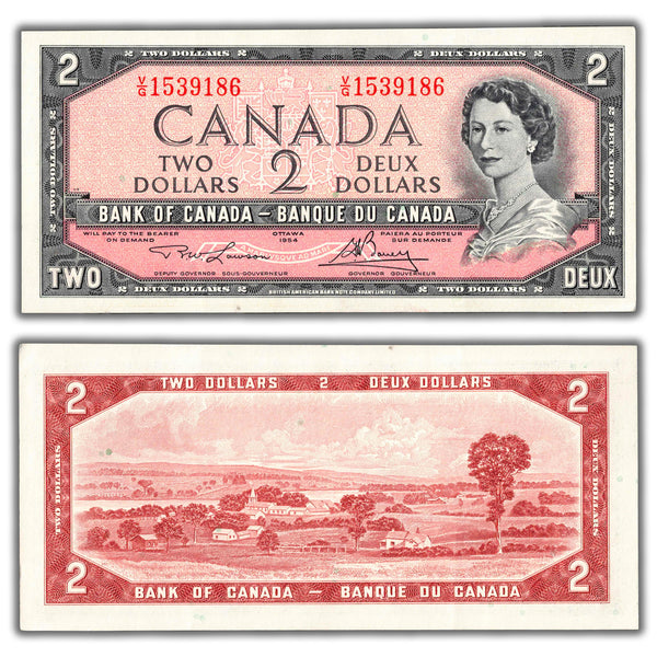 SOLD $2 1954 Bank of Canada Note Lawson-Bouey V/G Final Prefix BC-38d - AU