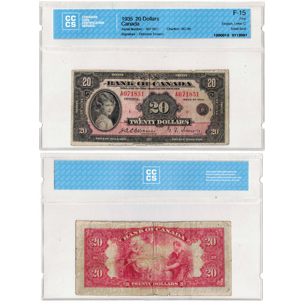SOLD $20 1935 Bank of Canada English Text Small Seal BC-9b - CCCS F-15