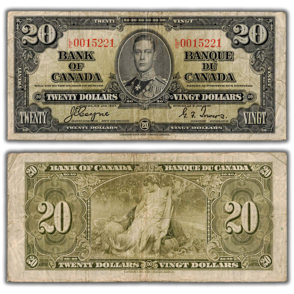 $20 1937 Bank of Canada Note Coyne-Towers L/E Final Prefix BC-25c - Fine