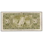 SOLD $20 1937 Bank of Canada Note Coyne-Towers K/E BC-25c - VF (writing)