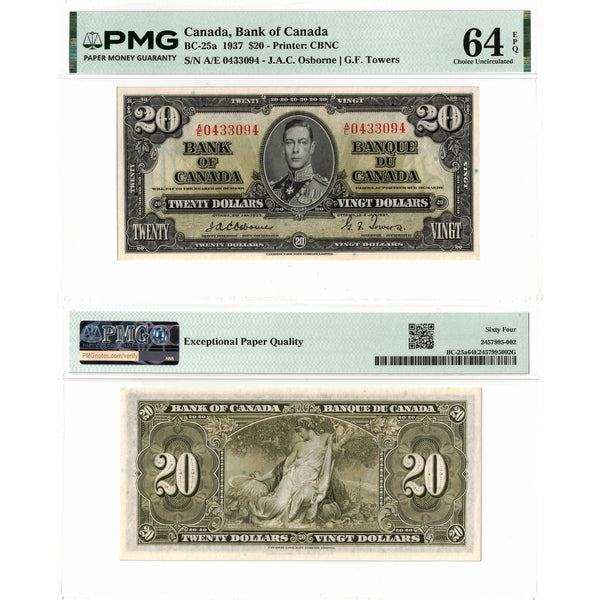 $20 1937 Bank of Canada Note Osborne Signature BC-25a - PMG Ch UNC-64 EPQ