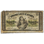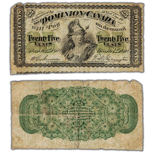SOLD 25 Cents 1870 Dominion of Canada Note Shinplaster Note DC-1c - Bottom Note Attached