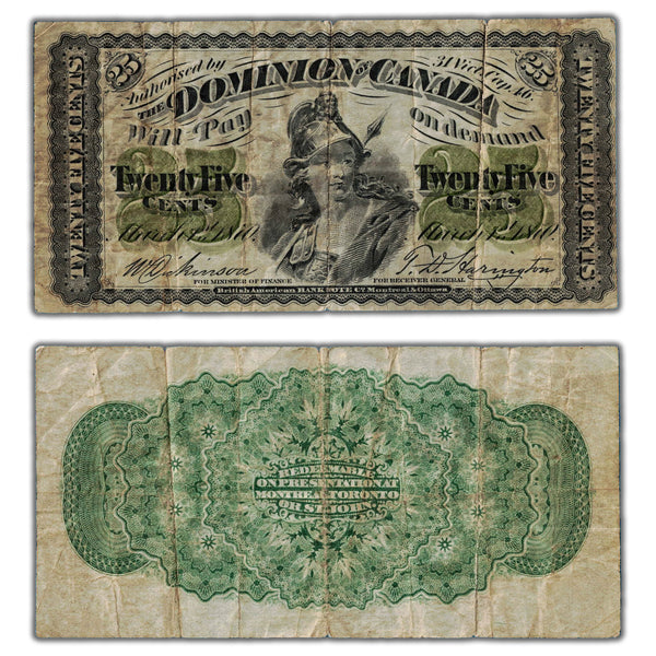 25 Cents 1870 Dominion of Canada Note Shinplaster Plain DC-1c - Fine