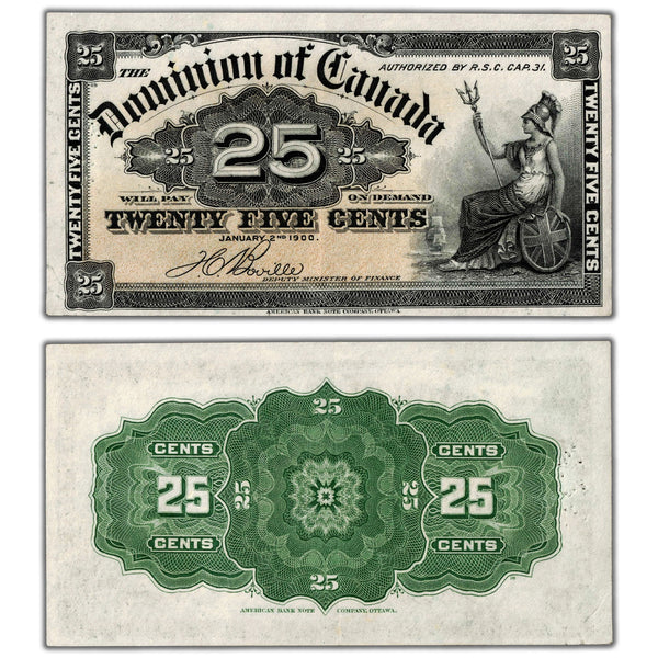 25 Cents 1900 Dominion of Canada Note Shinplaster Boville DC-15b - AU (pinholes)
