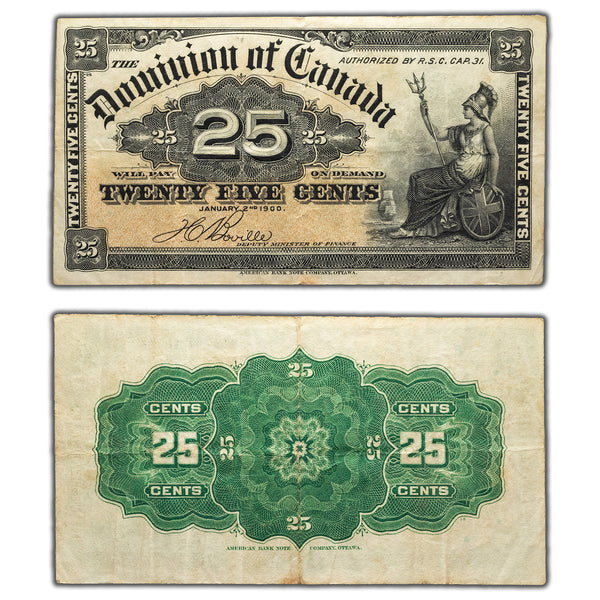 SOLD 25 Cents 1900 Dominion of Canada Shinplaster Note Boville DC-15b - F/VF