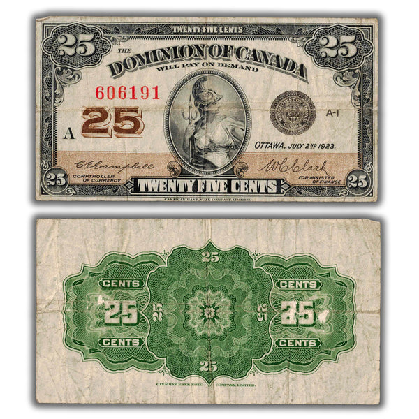 25 Cents 1923 Dominion of Canada Note Shinplaster DC-24d - F/VF