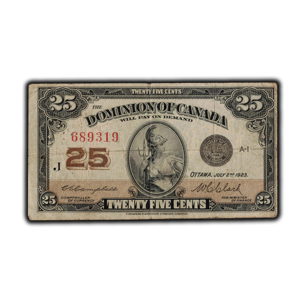 SOLD 25 Cents 1923 Dominion Of Canada Shinplaster Note DC-24d - Pinholes