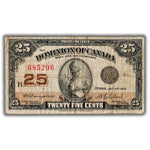25 Cents 1923 Dominion of Canada Shinplaster Note DC-24d - Pinholes