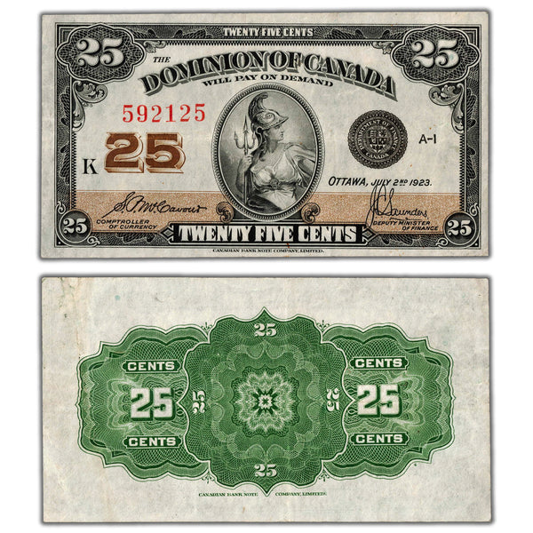 25 Cents 1923 Dominion of Canada Shinplaster Note DC-24c - About EF