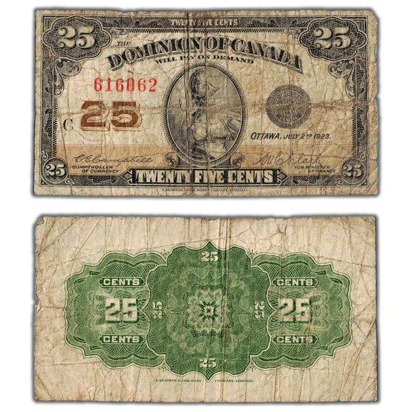 25 Cents 1923 Dominion of Canada Shinplaster Note DC-24d - Small Pinholes