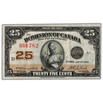25 Cents 1923 Dominion of Canada Shinplaster Note DC-24d - VF+