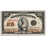 25 Cents 1923 Dominion of Canada Shinplaster Note DC-24d - VF+