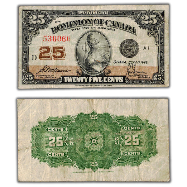25 Cents 1923 Dominion of Canada Shinplaster Note DC-24c - Fine