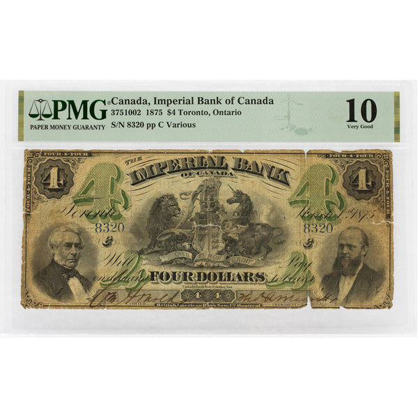 Available for sale is a SOLD $4 1875 Imperial Bank of Canada Chartered Note #375-10-02 - PMG VG-10