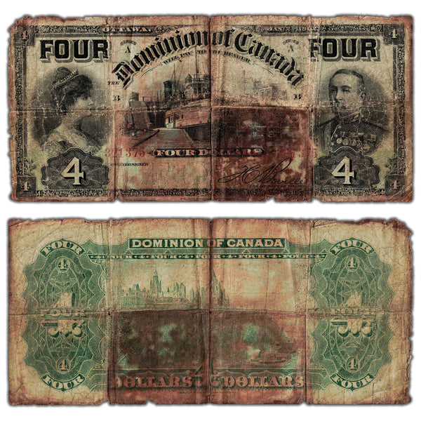 Available for sale is a $4 1902 Dominion of Canada Note Word "FOUR" at Top DC-17b - Filler