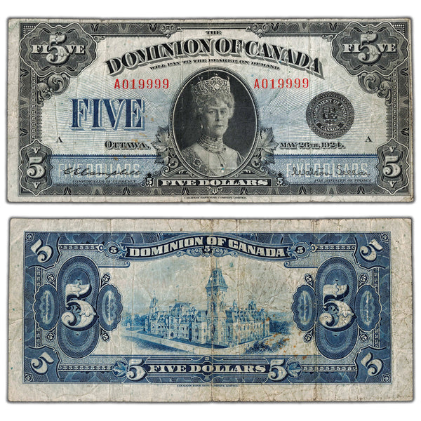 $5 1924 Dominion of Canada Note Queen Mary DC-27 - Fine
