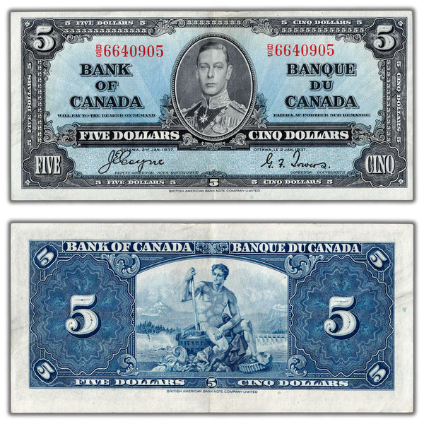 $5 1937 Bank of Canada Coyne-Towers B/S Prefix BC-23c - EF+