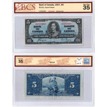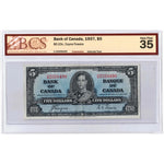 $5 1937 Bank of Canada Note Coyne-Towers C/S Prefix BC-23c - BCS VF-35