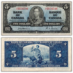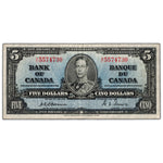 Available for sale is a $5 1937 Bank of Canada Note Osborne Signature BC-23a - VF