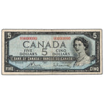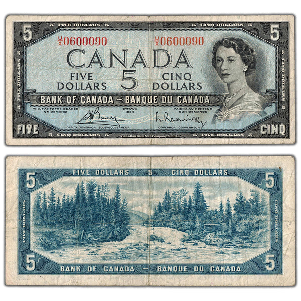 $5 1954 Bank of Canada Note U/X Prefix BC-39c - Scarce Rotator Serial Number