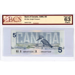 SOLD $5 1986 Bank of Canada Note Knight-Thiessen ANK Prefix BC-56d - BCS Ch UNC-63