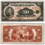 SOLD $50 1935 Bank of Canada Note English Text BC-13 - Light Pencil Country: Canada Year: 1935 Denomination: 50 Dollars Signatures: Osborne-Towers Prefix/Series: A Variety: English Text Catalogue: BC-13 Grade:...