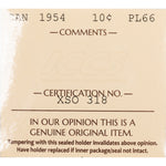 Available for sale is a Canada 1954 10 Cents Dime Silver Coin - ICCS Proof-Like PL-66 SKU: XSO318