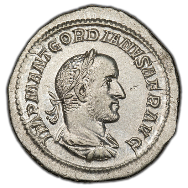 Available for sale is a Ancient Rome Imperial AD 238 Gordian II AR Denarius BMC 19 RIC 1 SKU: AC049