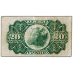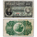 Available for sale is a Argentina 1890 20 Centavos Note P #211a - VF Country: Argentina Year: 1890 Denomination: 20 Centavos Catalogue: Pick #211a Grade: VF Serial/SKU: 007764