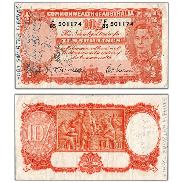 Australia ND (1939-52) 10 Ten Shillings Note P #25b - Short Snorter