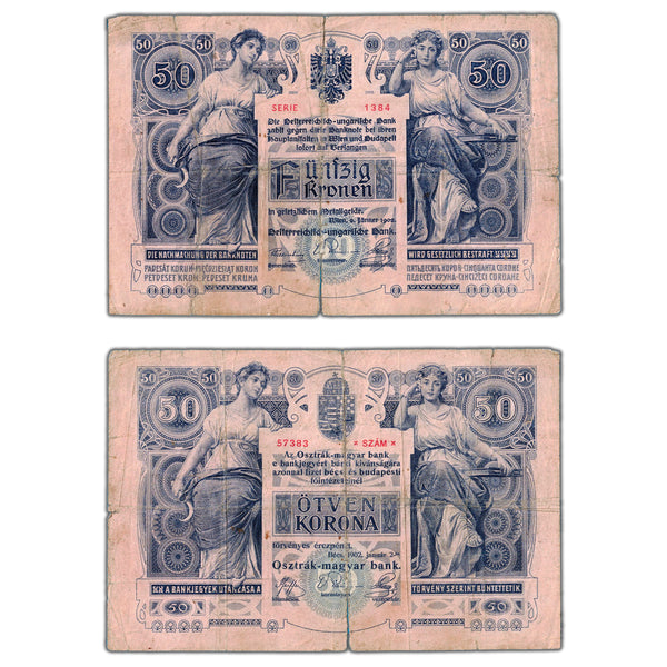 Austria Hungary 1902 50 Fifty Kronen Note P #6 - Large Tear
