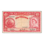 Bahamas N.D (1953) 10 Shillings Note P #14b - F/VF