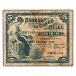 Belgian Congo 1943 5 Five Francs Note P #13Ab
