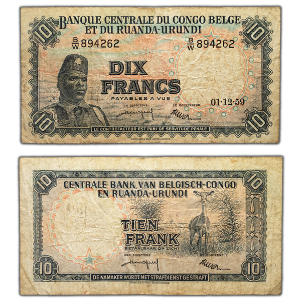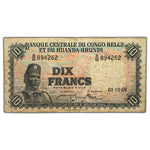 SOLD Belgian Congo 1959 10 Ten Francs Note P #30b