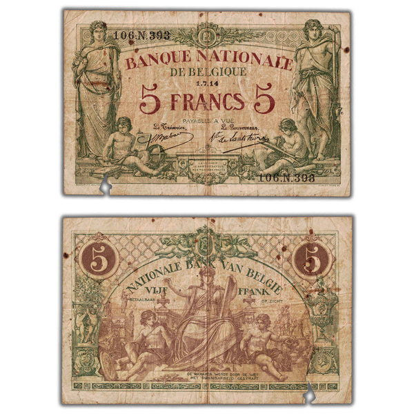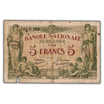 SOLD Belgium 1914 5 Five Francs Note P #75a - Missing Piece/Pinholes