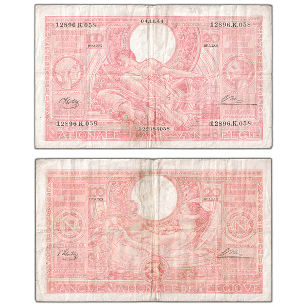 Belgium 1944 100 Frank / 20 Belgas Note P #114 - Circulated