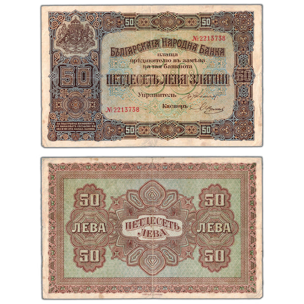 Available for sale is a Bulgaria 1917 50 Fifty Leva Note P #24a - Circulated SKU: 2213738