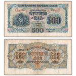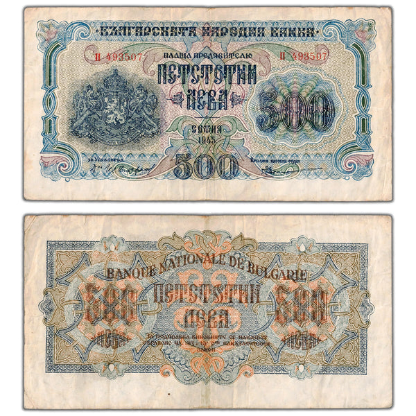 Available for sale is a Bulgaria 1945 500 Leva Note P #71 - VF Country: Bulgaria Year: 1945 Denomination: 500 Leva Catalogue: Pick #71 Grade: VF Serial/SKU: 493507