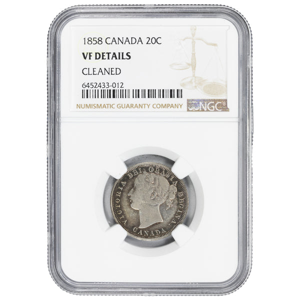 SOLD Canada 1858 20 Cents Silver Coin - One Year Type - NGC VF Details (cleaned)