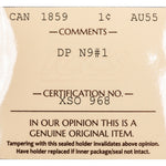 Canada 1859 DP N9 #1 1 Large Cent Coin - ICCS AU-55