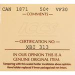 Canada 1871 50 Cents Half Dollar Silver Coin - ICCS VF-30